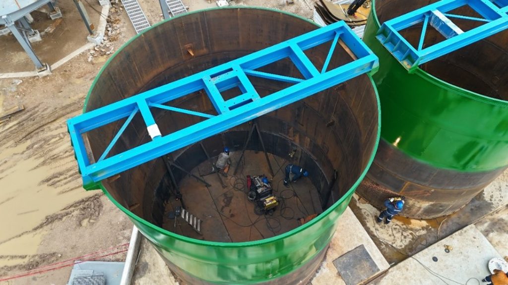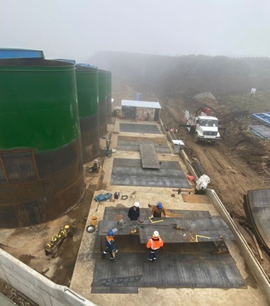 All civil works have been completed, and all reagent supply pumps are on site. The largest reagent preparation tanks have been fabricated and are being transported to the project.