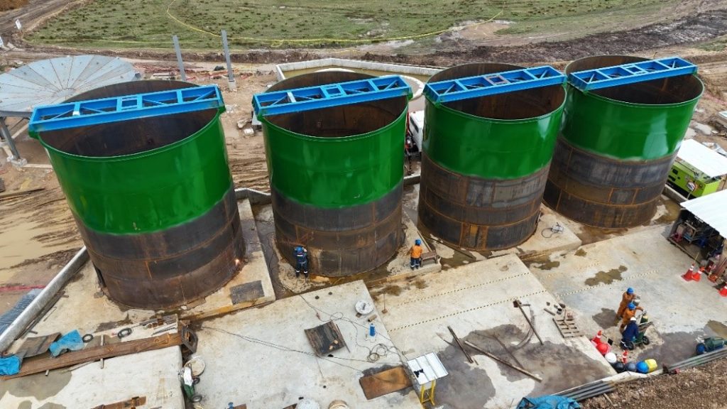 The civil works for the leaching area have been completed, and the installation of tanks, managed by JPC Ingenieros, has begun. All metal-mechanical materials are 100% purchased and delivered to site. Welding and assembly of the first four tanks are being finalized, while the bases for the remaining four tanks are underway, with completion expected by mid-December.