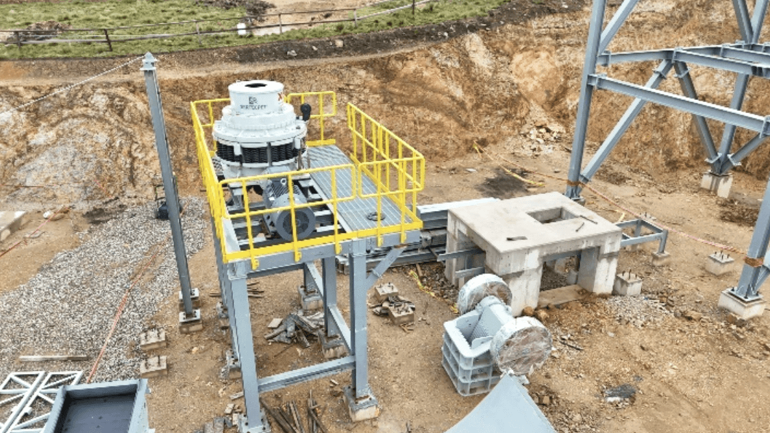 Assembly of the crushing circuit is well advanced. The cone crusher and vibrating screen have been installed, along with the fine ore bin and several conveyors. The run-of-mine ore bin is on site and undergoing pre-assembly, while installation of the primary crusher is currently underway.