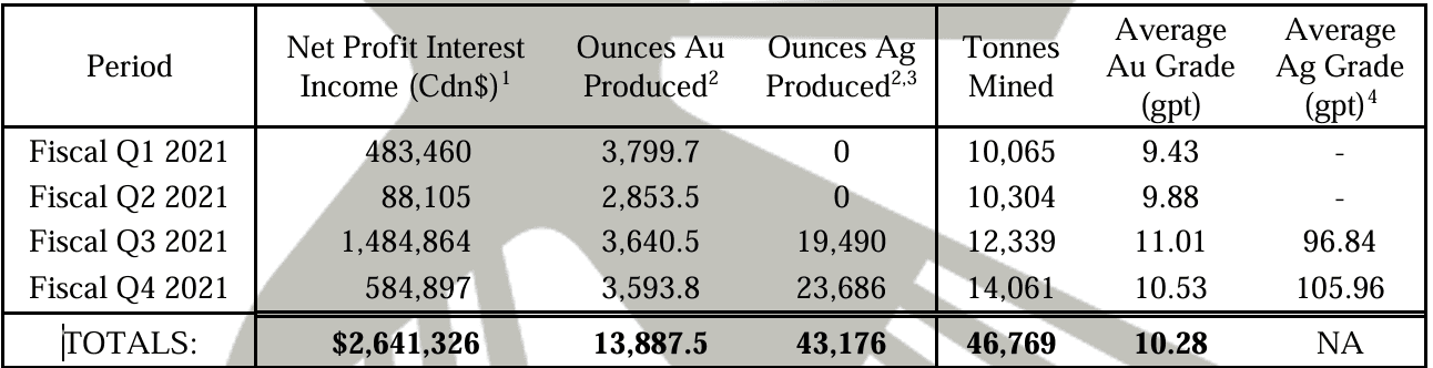 Net Profit Interest Income for each Quarter can be found in each respective Quarter’s Financial Statement as file on SEDAR and available on the Company’s website.