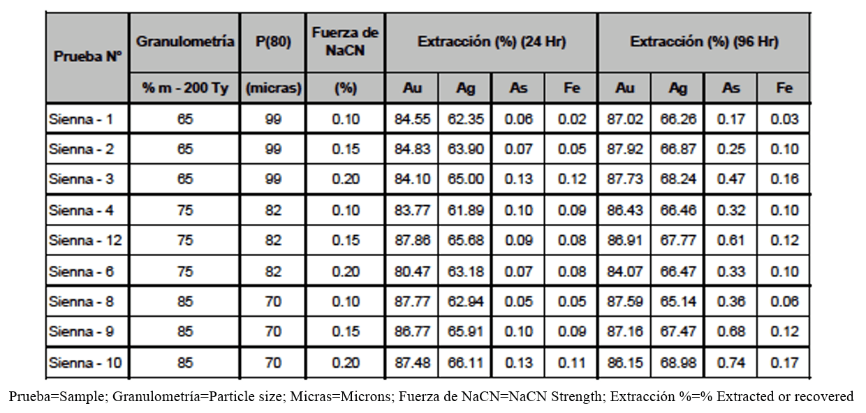 Brian J. Maher, President and CEO of Peruvian Precious Metals commented: “This metallurgical test work validates our geologic observation that the oxidized gold and silver mineralization from the Callanquitas resource is amenable to conventional NaCN extraction. With the test work in hand, we are excited to move forward with more detailed metallurgical studies that will enhance our understanding of possible milling and processing scenarios, testing that may improve precious metal recoveries further. We are continuing discussions with toll mill operators and processing plant suppliers to determine the best milling options for mineralized material produced from our underground test mining and bulk sampling program”.